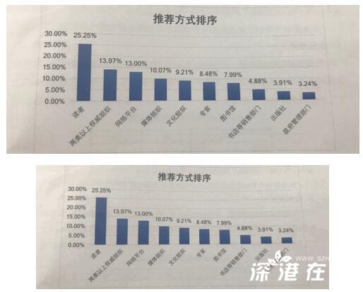 调查还通过梳理35个奖项包含的四个基本维度,探究了图书奖项认知度对购书量的影响。四个维度分别为外国图书奖项、市场类图书奖项、政府类图书奖项和有影响力的图书奖项。分析发现,网民对外国图书奖项和市场类图书奖项认知度越高,购买量越多;对有影响力的图书奖项认知度越高,购买量越低;政府类图书奖项对购书量没有影响。 调查显示,网民对中国图书奖项的评价则会影响网民的阅读选择和对不同类型图书的阅读数量。不少网民会根据图书获奖名单来决定自己阅读图书的类型,倾向于阅读影响力较大的图书,同时也会考虑图书的文字质量。同时,获奖图书的奖项影响力越大,网民对其各类图书的阅读数量越高;获奖图书的娱乐消遣属性越强,网民对其各类图书的阅读数量越低。 (二)读者推荐评选是认可程度最高的图书奖项推荐评选方式 图书奖项推荐评选方式是否会影响网民对图书奖项的认知与评价?研究发现,读者推荐评选是认可程度最高的图书奖项推荐评选方式,其次为两类以上权威组织推荐和网络平台推荐,而专家推荐评选方式评价排名较低。